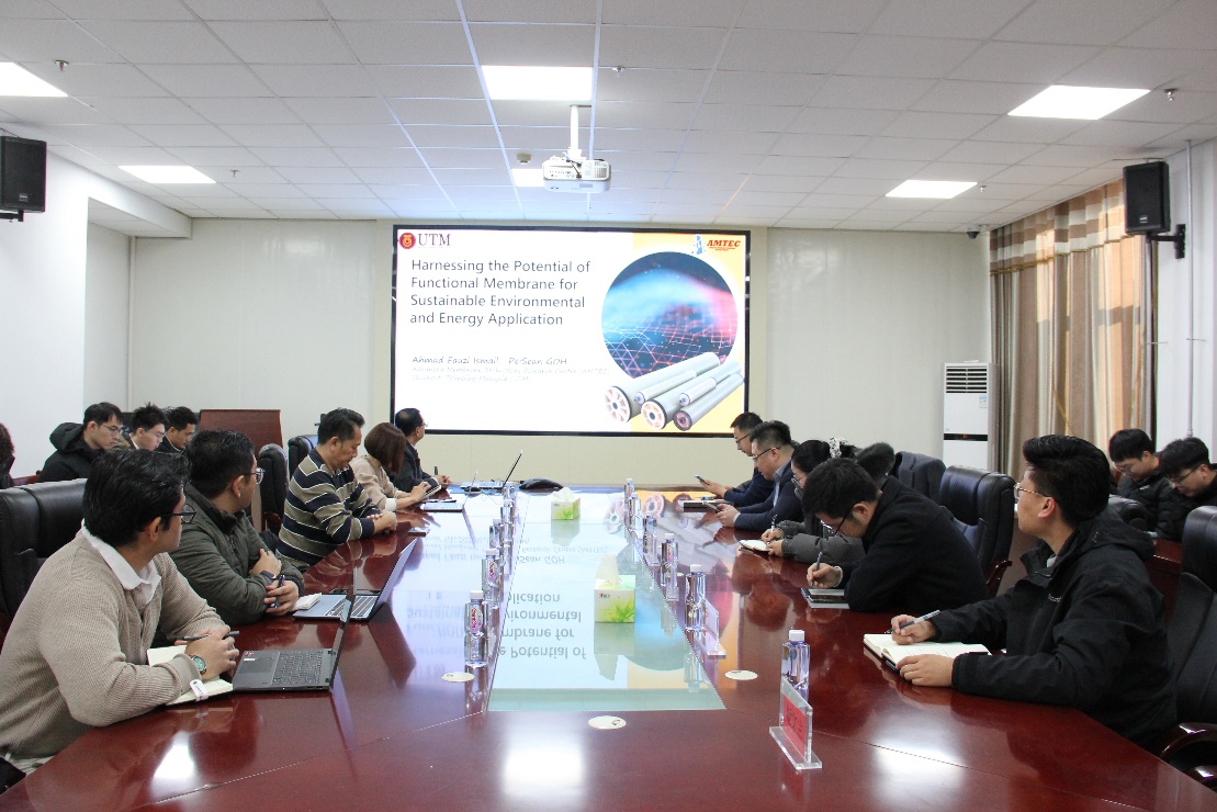 魏逸彬研究员邀请,我校“宁东煤炭高效利用与绿色化工学科创新引智基地”海外专家Ahmad Fauzi Bin Ismail教授以“HarnessingthePotentialofFunctionalMembraneforSustainable:EnvironmentalandEnergyApplication”为主题,聚焦功能膜材料制备与应用技术,系统介绍了膜分离技术在全世界范围内的典型应用需求、高性能纳米结构膜材料的制备、马来西亚理工大学先进膜技术中心在膜材料在环境和能源领域的应用及产业化等内容,展望了未来膜技术的发展方向。整场报告内容丰富、逻辑清晰,Ahmad Fauzi Bin Ismail教授风趣幽默的回答了现场师生提出的学术问题,激发了在场师生对分离膜领域前沿问题的浓厚兴趣。