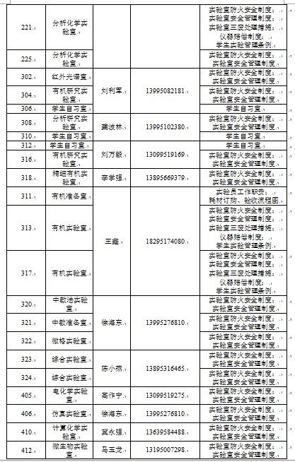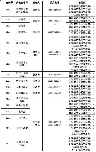5、学院实验室的地点和实验室责任人以及联系方式和制度列表。