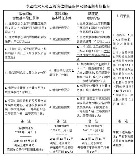 根据《蘑菇视频 2012-2013年专业技术人员五级岗位竞聘方案》的要求,结合学院实际及十二五规划,院聘任领导小组研究提出如下聘任条件及聘任期考核指标。见下表。