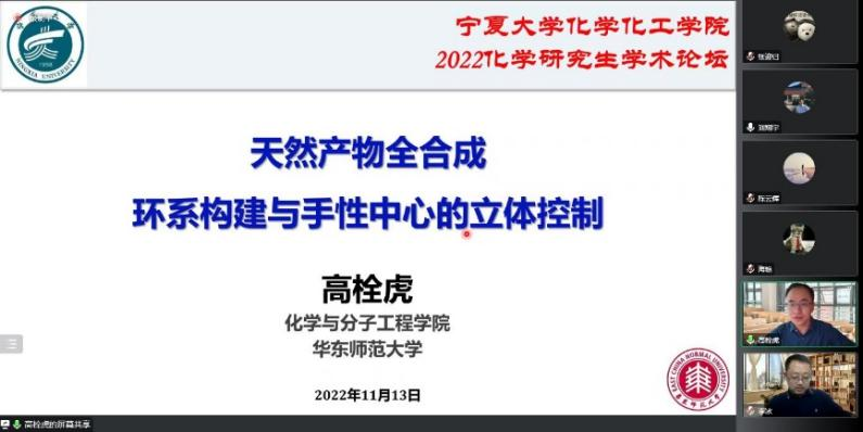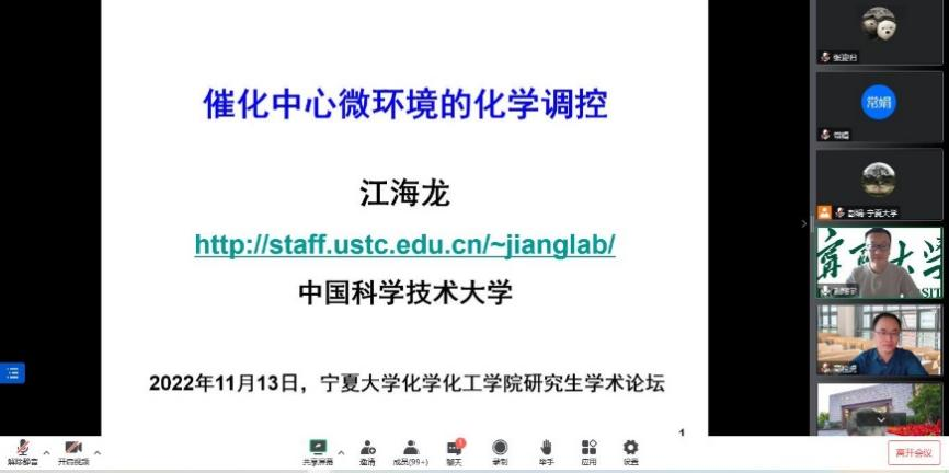 化学研究生学术论坛在线上召开,论坛主题为“聚焦前沿,探索创新”。本次论坛邀请了国家杰出青年基金获得者、中国科学技术大学江海龙教授,国家杰出青年基金获得者、华东师范大学高栓虎教授。学院170余名师生参加了本次活动,论坛由刘翔宇副院长主持。