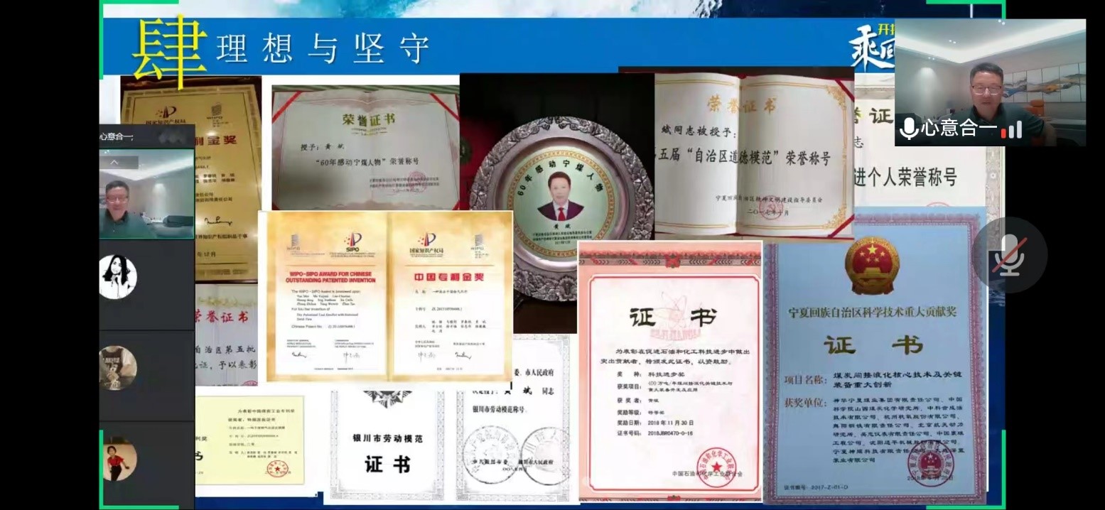 黄斌副总裁结合宁东基地煤化工产业发展的历程,给同学们分享了他自2004年宁东基地开发建设以来,作为核心成员参与25万吨/年煤基甲醇、50万吨/年煤基烯烃和400万吨/年煤制油等项目建设,在世界单体规模最大的煤制油项目中作为总工程师,发挥了技术主导作用,并且主导开发了具有自主知识产权的“神宁炉”干煤粉气化技术,在煤气化技术方面突破了多项现代煤化工产业的卡脖子技术。他先后获得中国专利金奖、中国石油化工联合会科技进步一等奖、中国机械联合会一等奖、中国煤炭工业专利奖二等奖、自治区科技进步特等奖、二等奖等,自治区第五届“道德模范”,自治区“最美人物”,银川市“劳动模范”、“优秀共产党员”、神华集团“专利之星”,宁东高层次人才等荣誉称号。