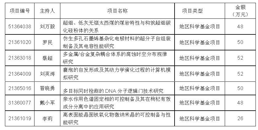 继2012年获得5项国家自然科学基金项目后又一次实现的历史性突破。立项基金项目负责人及项目名称如下: