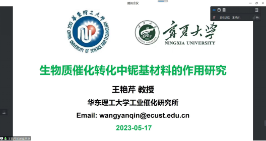 王艳芹教授以“生物质催化转化中铌基材料的作用研究”为题作了报告,介绍开展了铌基催化材料对生物质关键组分高值转化的内在构效关系研究,重点从铌基氧化物结构的亲氧性和亲苯环性对(半)纤维素、木质素以及塑料结构分子中C-O和C-C等化学键的定向转化做了深入分析,为催化材料活性位定向设计促进生物质碳源高效转化提供了新思路。