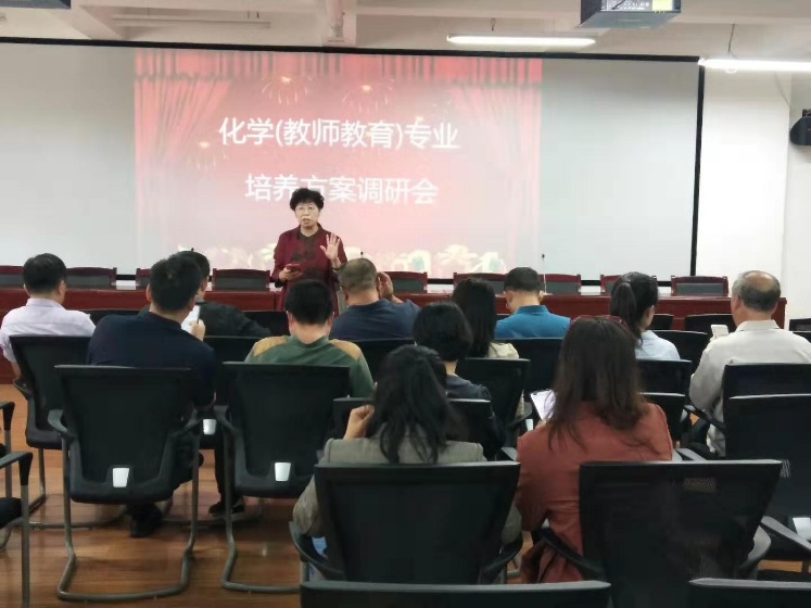的吴晓红教授主持,对化学(教师教育)专业培养方案进行了详细解读。参加此次调研会的人员有李冰副院长和化学(教师教育)专业全体授课教师。